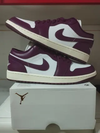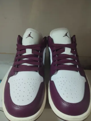 Zapatillas Jordan 1 Low en color morado y blanco. Ideales para coleccionistas o para uso diario. - Diseño clásico de caña baja. - Combinación de colores llamativa. - Suela de goma para mayor durabilidad.