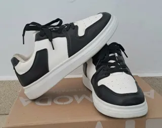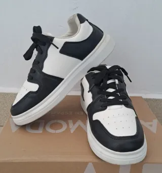 Zapatillas deportivas de estilo urbano con un diseño moderno. Combinación de colores blanco y negro, cierre con cordones y suela de goma. Talla 36 #combinaloconmascositasdemiperfil