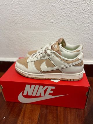 Zapatillas Nike Dunk Low en tonos marrones y blancos. Un diseño clásico y versátil. Con caja incluida - Parte superior de cuero. - Suela de goma. - Cierre con cordones.