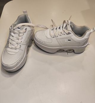 Zapatillas con ruedas de la marca Liekick. - Color blanco. Botón de transformación: Sistema incorporado de ruedas retráctiles de doble fila. El sistema ABRIR–CERRAR–BLOQUEAR te permite cambiar tu estilo de movimiento en un segundo. Juego completo: - Un par de Patines. - Kit de reparación + rueda de repuesto. - Manual de usuario.