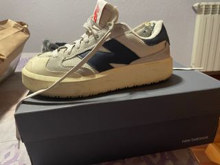 Zapatillas New Balance CT302 en color blanco y azul marino, talla 38. Tienen desgastes como se ve en la foto. Por dentro también hay desgaste en la parte delantera. - Modelo CT302