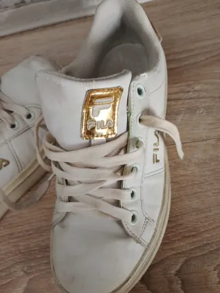 Zapatillas Fila Blancas y Doradas