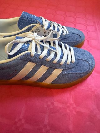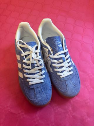 VENTA EN PERSONA nuevas sin abrir Zapatillas Adidas Samba OG en talla 38. - Diseño clásico con las tres rayas. - Parte superior de cuero blanco y ante gris. - Suela de goma marrón. - Detalle de SAMBA en el lateral.