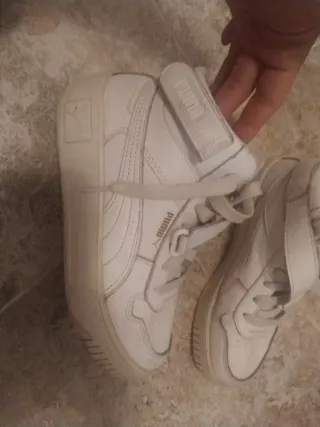 ✅Vendo pack de tres pares de zapatillas de diferentes marcas en muy buen estado. Se venden porque se han quedado pequeñas, sin arañazos y sin marcas de desgaste. 👟Zapatillas altas Puma Rebound V6 en blanco, negro y rojo. Talla 36. 👟Zapatillas de running para niña - adidas Tensaur Run 2.0. Talla 35,5 Preguntar sin miedo 👌 Escucho ofertas👌