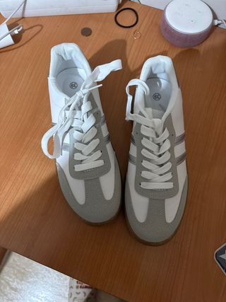 Zapatillas de color blanco con detalles en negro. Sin estrenar por error de número - Diseño deportivo y casual. - Cierre con cordones.