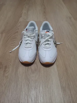 Zapatillas Nike Pacific con un diseño moderno y detalles únicos. - Color principal blanco. - Detalles en estampado de leopardo. - Suela de goma marrón. Tengo la caja y todo Sólo un par de usos