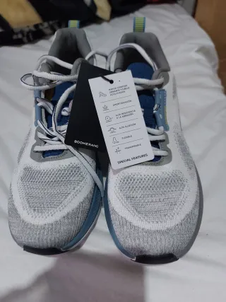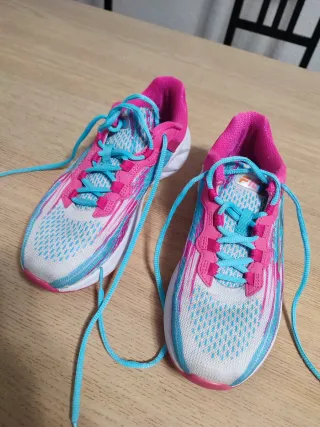 Zapatillas deportivas Hoka Match X2 en tonos azules y blancos. Usadas una vez. Las vendo porque me hicieron una herida por mi forma de pisada y tuve que comprarme otra marca, se puede apreciar en la última foto
