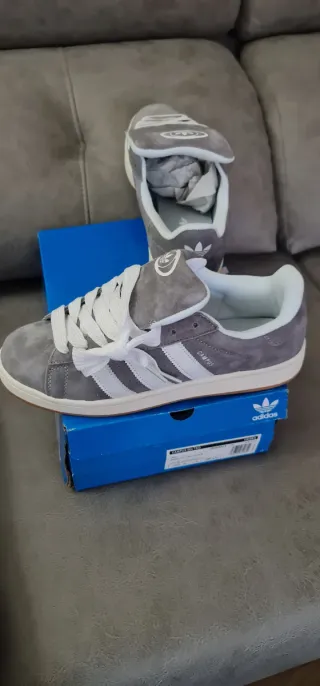 Zapatillas deportivas adidas campus de chico en color gris y blanco. - Cierre con cordones. - Detalle de logo en la lengüeta. - Logo de Adidas en la plantilla,en su caja original más cordones de repuesto...