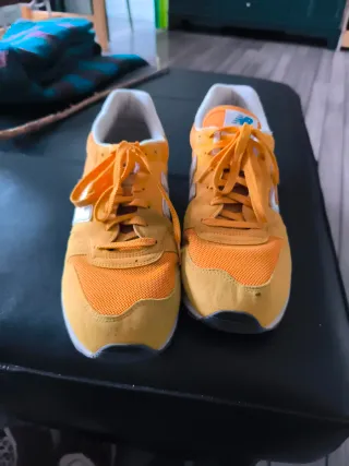Zapatillas deportivas New Balance en tonos naranjas y amarillos. - Diseño clásico. - Cordones naranjas. - Detalle blanco en el lateral.