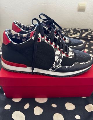 Zapatillas deportivas Carolina Herrera, en colores rojo y negro. Son un calzado cómodo y elegante, ideales para el día a día. - El diseño es llamativo y combina a la perfección con diferentes estilo