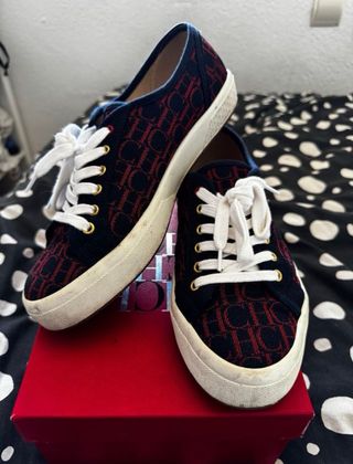 Zapatillas de la reconocida marca Carolina Herrera con un diseño distintivo. - Combinación de colores rojo y azul marino - Estampado CH en toda la zapatilla.