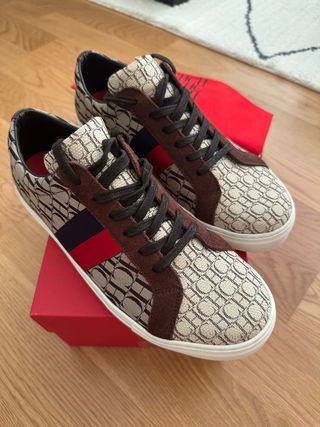 Zapatillas deportivas de la marca Carolina Herrera. Son de color marrón y beige, con un diseño elegante y discreto. Ideales para un look casual. - Están en buen estado. - Son muy cómodas.