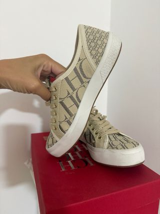 Zapatillas de lona de CH con el distintivo monograma de la marca en número 36. Diseño de caña baja. Están en perfecto estado, usadas muy pocas veces. Se puede apreciar en las fotos su buen estado. Se envían con caja.