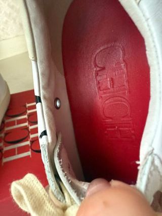 Zapatillas de Carolina Herrera, talla 40, a estrenar. - Diseño moderno y elegante. - Combinación de blanco con detalles en rojo y dorado. - Materiales de alta calidad.