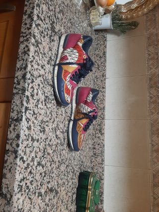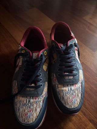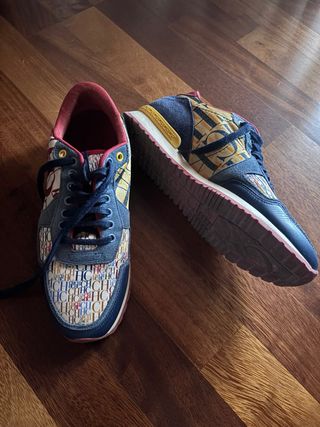 Zapatillas deportivas de Carolina Herrera con un diseño llamativo. - Combinación de colores azul y rojo. - Estampado distintivo de la marca. Usadas muy poco