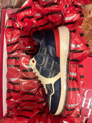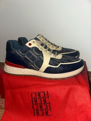 Zapatillas deportivas de Carolina Herrera con un diseño llamativo. - Combinación de azul marino y rojo. - Estampado de monograma CH. - Detalle brillante en el talón. -100% originales -Se venden por falta de uso, puestas 2 veces -Talla 38