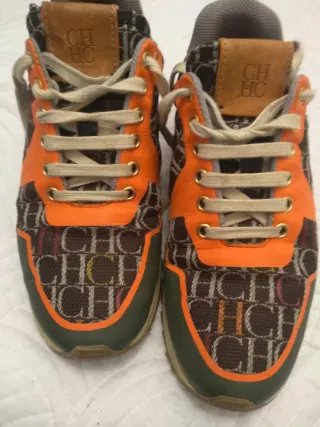 Zapatillas de paseo de la marca Carolina Herrera. - Diseño en tonos marrones y multicolor. - Cordones marrones. - Detalle de logo en la lengüeta y en la parte trasera. se han usado pero les quedan mucho uso.