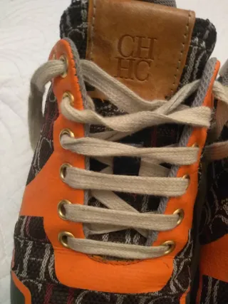 Zapatillas de Carolina Herrera con un diseño llamativo. - Combinación de colores marrón y naranja. - Estampado de logo CH por toda la zapatilla. - Detalle de cuero en la lengüeta con logo grabado.