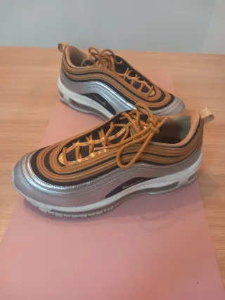 Zapatillas Nike TN con un diseño exclusivo. - Combinación de colores oro y plata. - Detalle de líneas en contraste.