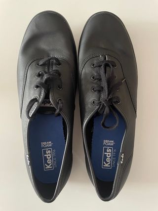 **Keds Champion Originals Leather** Talla 41. Estado prácticamente nuevas. Modelo clásico en cuero, muy cómodo y combinable. Suela de goma flexible, plantilla acolchada y forro transpirable. 4 ojales con cordones. Color y etiqueta pueden variar ligeramente según lote. Precio original: 60€