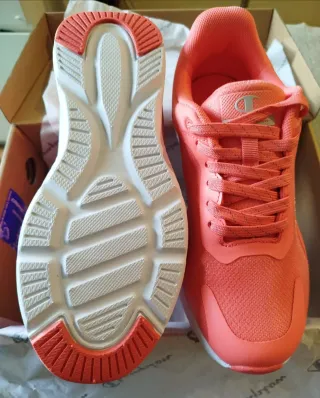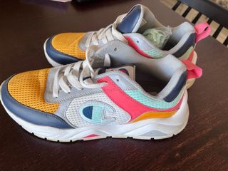 Zapatillas deportivas Champion para mujer en talla 39. Son un modelo nuevo, sin estrenar. - Diseño moderno en tonos naranjas y rosas. - Cierre con cordones. - Suela cómoda y ligera.