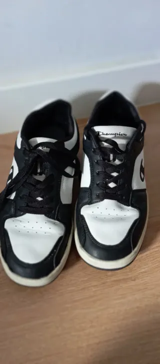 Zapatillas marca Champion originales de cuero y de color negro. Talla 42. En muy buen estado, poco uso, solo les vendría bien un lavado. Pregunte sin compromiso. Disponible venta en persona y envío.