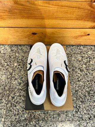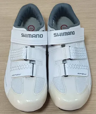 Zapatillas de ciclismo Shimano para mujer, modelo RP2W. Una sola puesta. No acerté con la talla... Regalo calas. Precio original 81€. - Cierre con velcro. - Diseño en blanco con detalles grises. - Suela con ventilación.