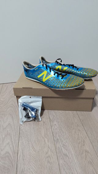 Zapatillas de atletismo New Balance LD5000. - Diseño en azul y amarillo. - Incluye herramienta y clavos para su colocación.
