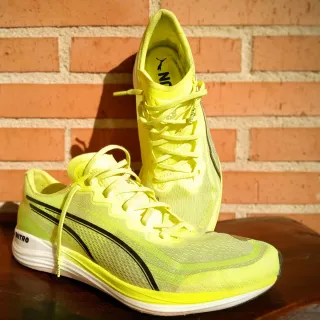 REACTIVAS y ULTRALIGERAS. Idesles para competición y entrenamientos rápidos. Con empeine de malla transpirable. La entresuela NITRO™ proporciona una respuesta rápida y la suela de PUMAGRIP ofrece máxima tracción en múltiples superficies. - AUTORIZADAS por la World Athletics para pruebas de PISTA. - Ideales para OPOSICIONES en las que exigen zapatillas autorizadas, como BOMBEROS COMUNIDAD DE MADRID. - Alternativa perfecta a los clavos para pruebas en pista de media y larga distancia, incluso velocidad. Color: AMARILlO Apple Spritz-Deep Plum *Usadas 2 meses en entrenamientos de calidad en pista y para la prueba de oposición.