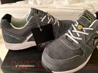 Zapato de seguridad talla 41. Nuevo con etiquetas zapato de seguridad J'hayber Works modelo Team S3S FO HRO SR en color gris. Es un calzado deportivo, ligero y flexible diseñado para entornos laborales. Puntera de seguridad: Incorpora una puntera de fibra de vidrio resistente a impactos de hasta 200 julios. Plantilla antiperforación: Cuenta con una plantilla no metálica JHAYFLEX. La designación S3S indica protección contra la perforación con un clavo pequeño, según la norma EN ISO 20345:2022. Material exterior: Confeccionado en serraje hidrofugado (resistente al agua). Suela: Suela de caucho y EVA resistente a 300°C (HRO).
