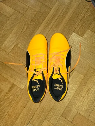 Zapatillas de atletismo Puma para triple salto y salto de longitud. Diseñadas para ofrecer rendimiento en la pista. Me las he puesto dos veces - Cierre de velcro. - Combinación de colores vibrantes. - Incluye bolsa de transporte con logo 'Track & Field'.