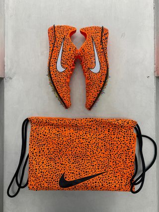 Zapatillas de clavos Nike Dragonfly Elite 2. Compradas en outlet al 30% - Patrón de salpicaduras en naranja y negro. - Swoosh de Nike en blanco en los laterales. - Suela con clavos para competición.