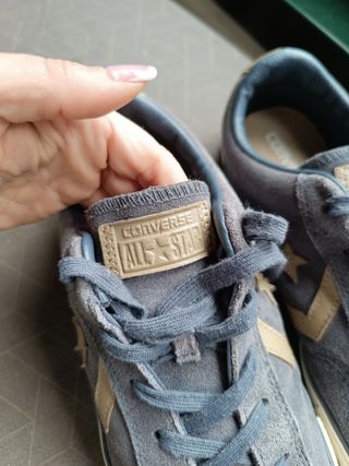 Zapatillas de hombre de la marca Converse,en ante gris,es un modelo en el que el antes ya viene desgastado a propósito ,en color azul marino y perfectas condiciones