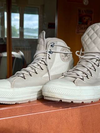 Botas Converse de caña alta, perfectas para el invierno y la lluvia. Son talla 43 y tienen waterproof. apenas usadas un par de veces. Por dentro tienen un forro acolchado. - Diseño acolchado en la parte superior. - Cordones resistentes y ojales metálicos. - Suela gruesa con buen agarre. - Detalle de logo circular en el lateral.