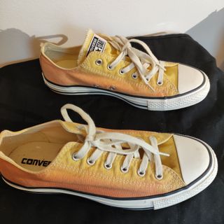 Zapatillas bajas Converse con un degradado de color naranja a amarillo. Usadas una vez. Como nuevas. - Diseño de corte bajo. - Cordones blancos. - Suela de goma blanca con detalles negros.