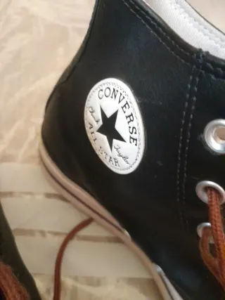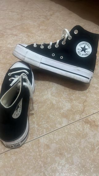 Zapatillas Converse negras, usadas solo un par de veces. - Diseño clásico de caña baja. - Suela de goma vulcanizada. - Cordones blancos.