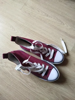 Clásicos tenis de lona. - Diseño de corte bajo. - Cordones blancos. - Suela de goma. - Costuras blancas. (Puestas una sola vez, me quedaron pequeñas)