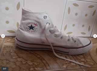 Zapatillas de caña alta de la marca Converse . - Destacar la goma de atrás esta desgastada y las punteras tienen marcas de uso ver últimas fotos. - Cierre con cordones blancos. - Suela de goma blanca. - Detalle de costuras.