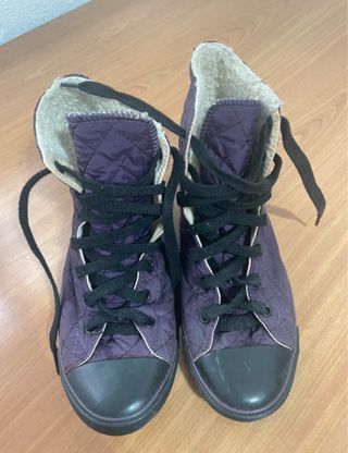 Zapatillas altas Converse de color morado con un diseño acolchado y forro interior. - Cierre con cordones negros. - Puntera reforzada. - Suela de goma.