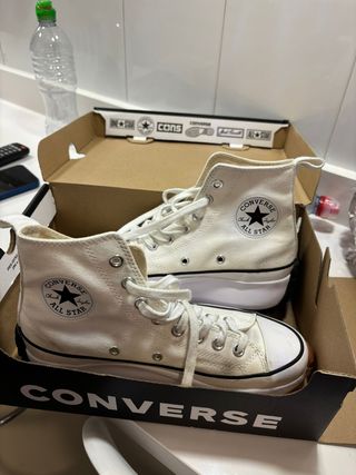 Zapatillas altas Converse Chuck Taylor All Star para mujer. - Diseño clásico de caña alta. - Plataforma gruesa para un look moderno. - Cordones blancos. - Logo de Converse en el lateral. - Se venden por fallo al pedir la talla y no se pueden devolver -Sin estrenar y con caja