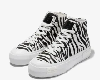 Zapatillas altas tipo converse de Dr Franklin con un llamativo estampado de Zebra. - Diseño de caña alta. - Cordones blancos. - Suela blanca de plataforma. -Nombre en los laterales de la suela