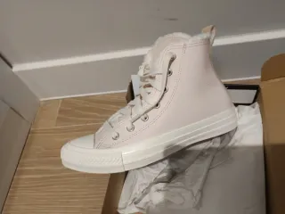 Zapatillas Converse altas, sin estrenar. El forro interior es de pelo sintético para mayor calidez. - Color rosa pálido. - Suela blanca. - Cierre con cordones.