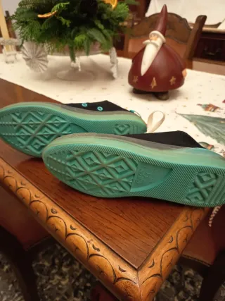 Zapatillas bajas de estilo clásico con cordones. - Parte superior de lona negra. - Detalles en color turquesa. - Suela de goma. - Punta reforzada.