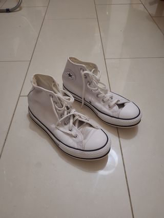 Zapatillas Converse de bota, en color blanco. Talla 38. Suela normal, sin plataforma.