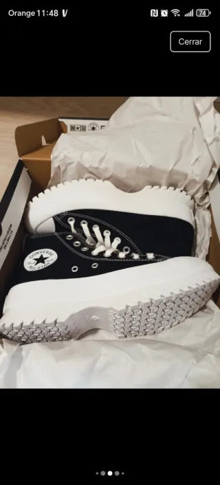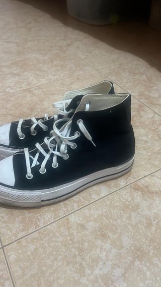 Zapatillas de lona estilo Converse, con plataforma, color blanco, dan talla 38.Son cómodas y versátiles para el día a día. De buena calidad - Cierre con cordones. - Suela de goma. - Detalle de banda negra en la suela.