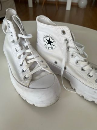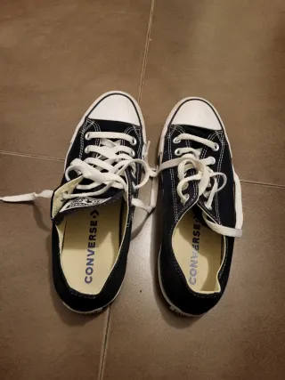 Converse all star plataforma baja originales, usadas y con alguna imperfección en la coloración como se ve en las fotos pero en buenas condiciones. Cordones blancos nuevos. Talla: 37
