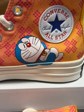 Exclusivas Converse Chuck 70 x Doraemon, una colaboración especial que une la silueta premium Chuck 70 con el mítico personaje japonés Doraemon. Una pieza perfecta para fans del anime, coleccionistas y amantes de las sneakers diferentes. 👟 Talla 37 🔥 ¿Por qué son especiales? La línea Chuck 70 es la versión más premium de las clásicas Converse: • Lona más gruesa y resistente. • Mejor amortiguación y comodidad. • Detalles vintage en la mediasuela. • Acabados de mayor calidad respecto a las All Star estándar. Esta edición incorpora gráficos y detalles inspirados en Doraemon, el icónico gato robot del del anime japonés.