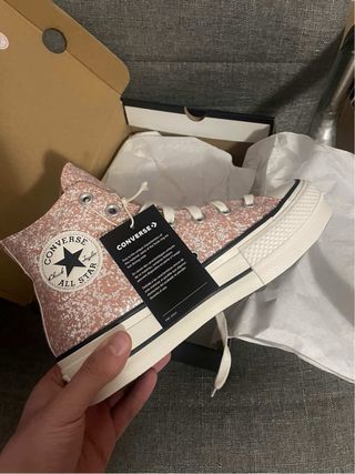 Zapatillas altas Converse Chuck Taylor All Star con un diseño brillante y llamativo. - Acabado con detalles de purpurina. - Cordones blancos. - Suela de plataforma. - Nuevas a estrenar con tiquet que lo demuestra. - Talla: 37