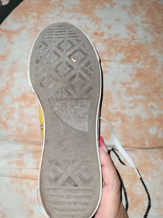 converse mujer talla 37,5, color amarillo mostaza muy bonito, son originales .. las vendo por que siempre llevo 38 pero un poco grande, y quise probar un medio menos pero me hacen daño, puesta 2 veces
