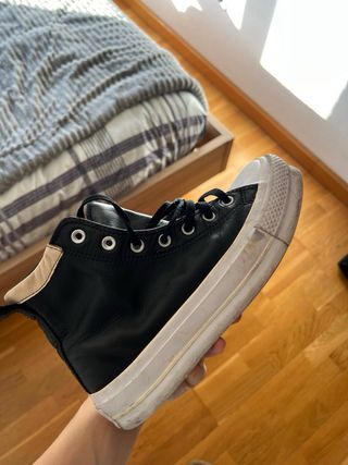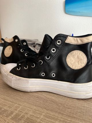 Zapatillas Converse con plataforma, en muy buen estado. - Diseño clásico de caña baja. - Cordones negros. - Suela de goma blanca.